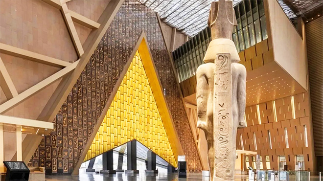 Depois de mais de 20 anos de obras, o museu abriu em novembro de 2025 com números faraônicos, incluindo 470 mil m² e mais de 100 mil artefatos, como a coleção completa de Tutancâmon.